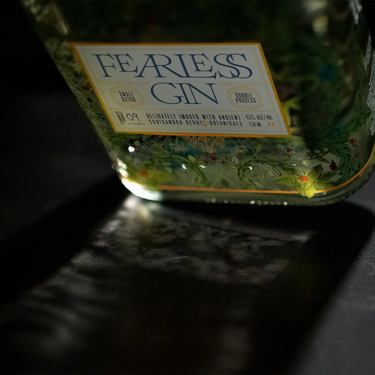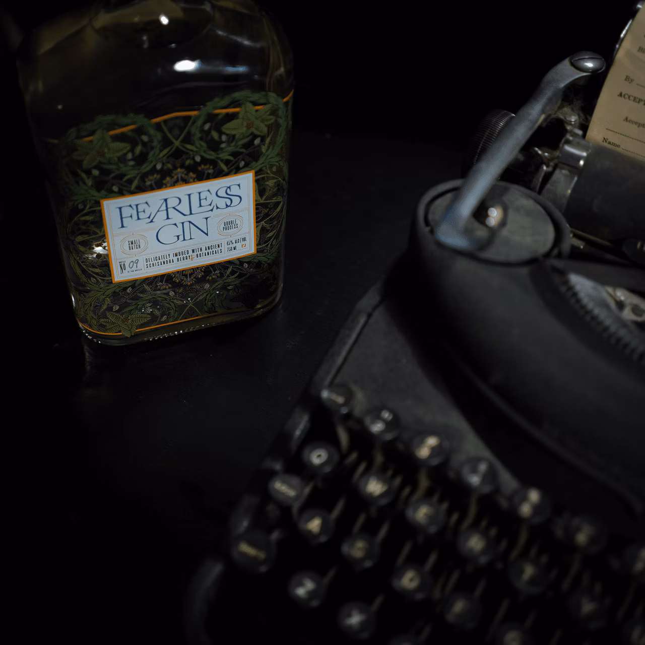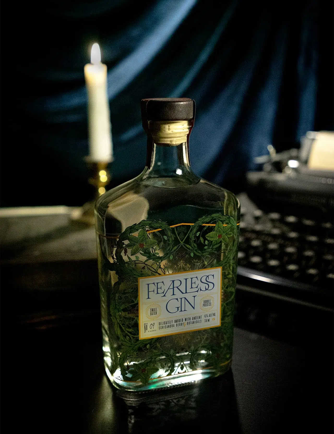 It was clear from the onset: a gin this unique needed a custom bottle label and package experience. Pulling inspiration from the history and aesthetics of supper clubs, exclusive societies and speakeasies, we set out to customize as much of the label as possible. The hand-illustrated pattern incorporates all of the gin's botanicals, and the custom Fearless Gin wordmark references turn of the century stamps. We made sure to craft the packaging in the same fashion – gilded patterns, personal messages and hidden clues fill a custom box. Each bottle is individually hand-numbered and each box hand-assembled. Because you know, this stuff is special.