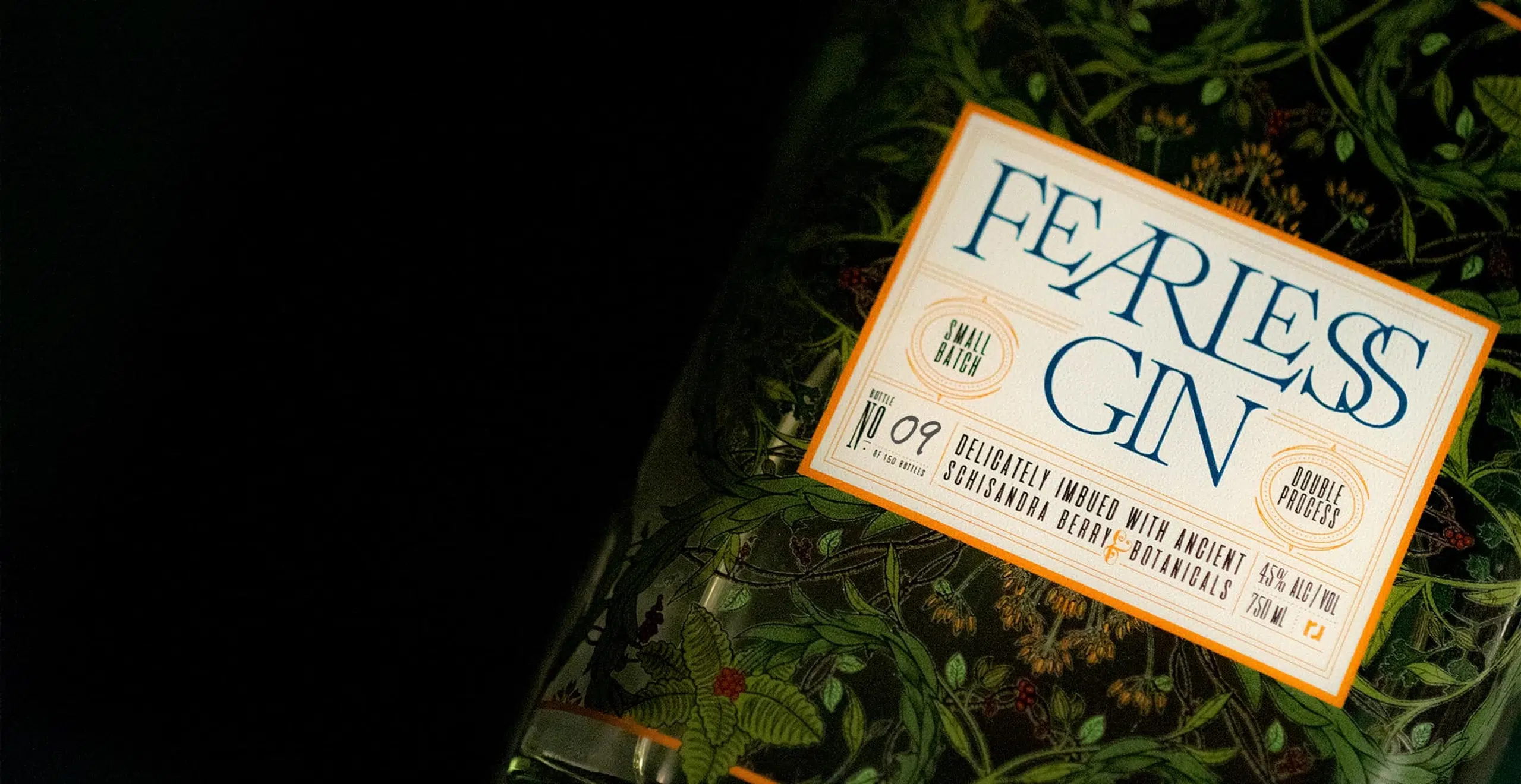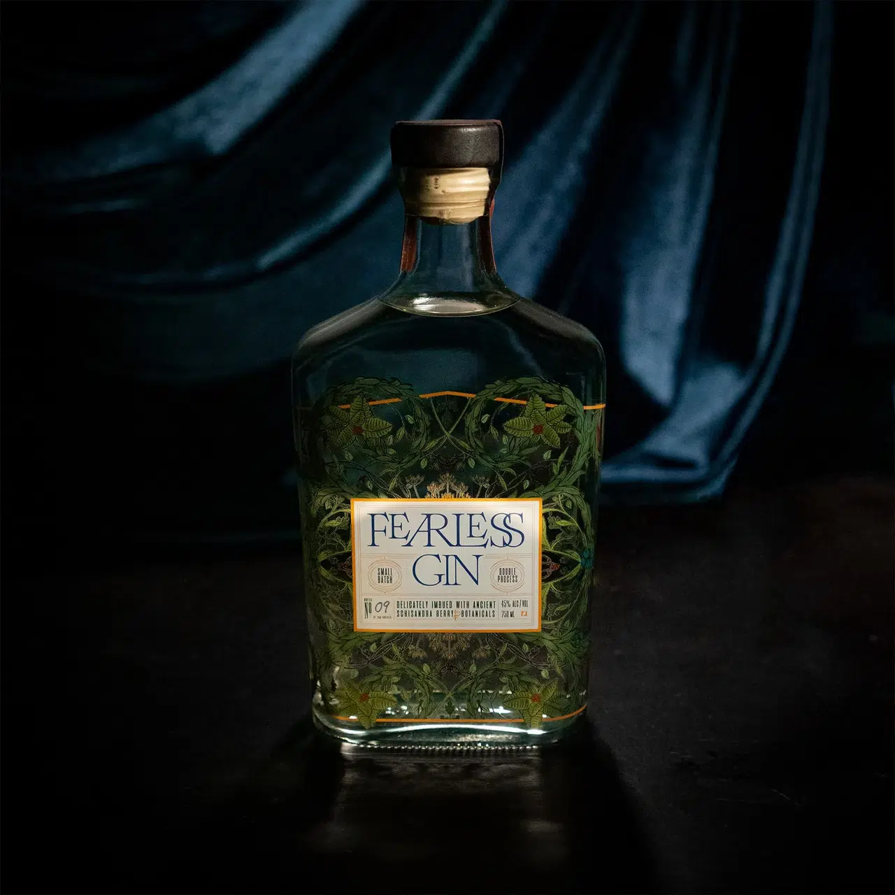 Some gins rely on a long, kitchen-sink list of botanicals for their complex flavor. But we started with a very different vision in mind: Fearless Gin is a finely-tuned composition of juniper, lemon balm, lemon verbena (for hints of bright citrus), fennel pollen, coriander (creating an aromatic backbone) and cardamom (the brooding, woody undertone). The experience is finished off with an infusion of the ancient “five-flavor” Schisandra berry, imparting a spicy finish and flavors reminiscent of a sea breeze. These botanicals all work meticulously in concert—building to create the booming symphony of flavor waiting in your glass.